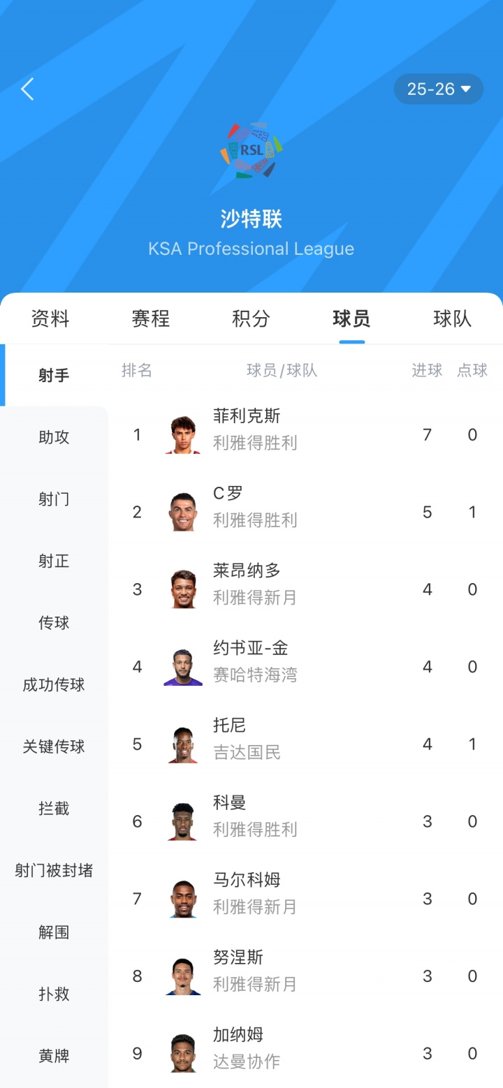 目前,菲利克斯在沙特联5轮攻入7球,暂时领跑射手榜。C罗打入5球位居第2。